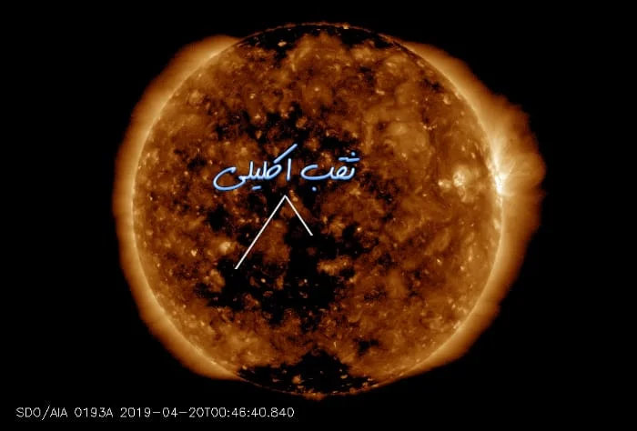 تدفق سيل من الريح الشمسية من ثقب اكليلي في الغلاف الجوي للشمس يواجه الكرة الأرضية حاليا ، ويتوقع أن تصل تلك الريح إلى المجال المغناطيسي لكوكبنا يوم الثلاثاء 23 ابريل 2019 ما سيؤدي لحدوث نشاط جيومغناطيسي صغير يتسبب في ظهور أضواء الشفق القطبي.