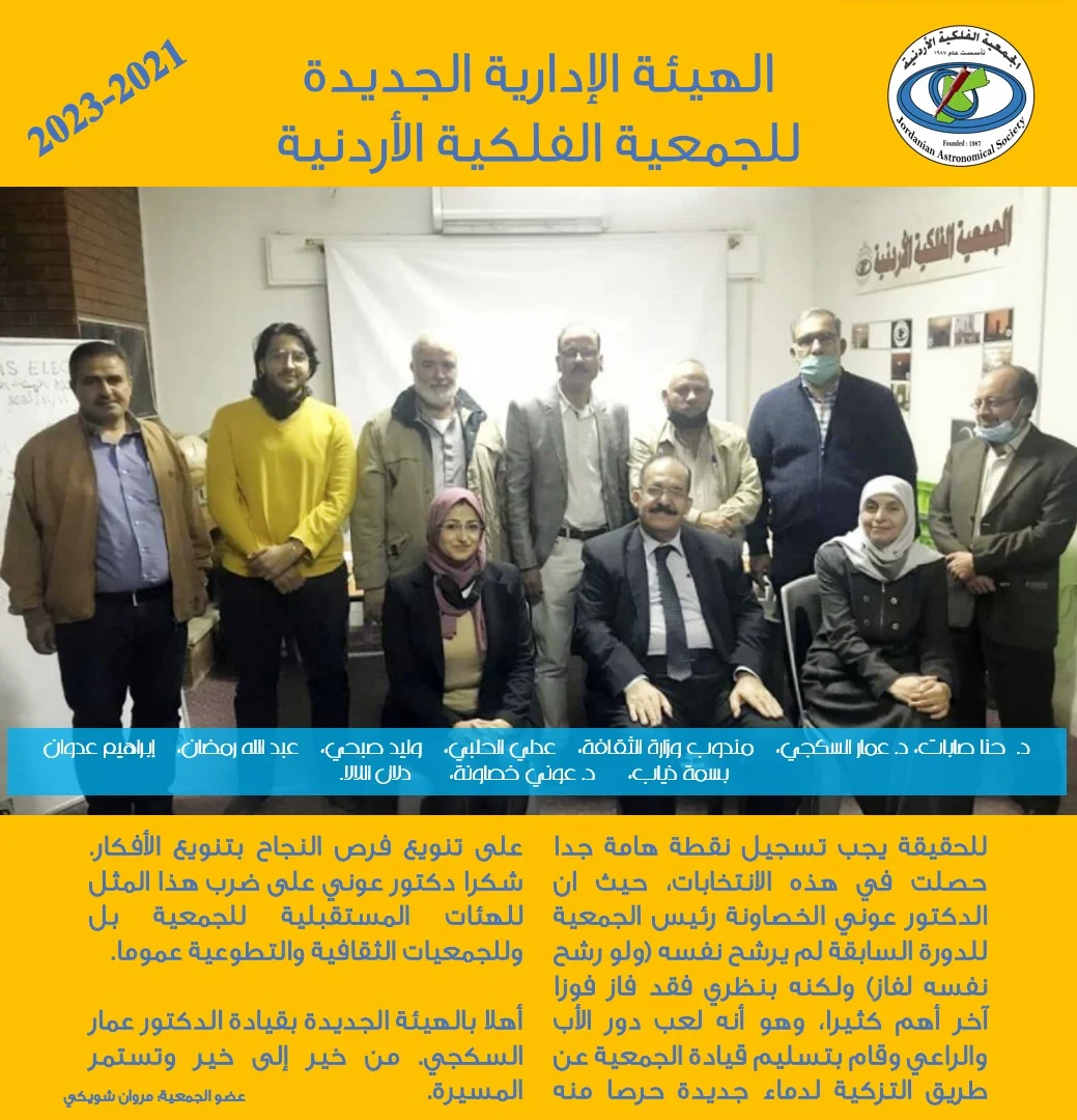 الهيئة الادارية الجديدة لجمعية الفلكية الأردنية