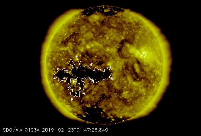 هذا الثقب الاكليلي رصد سابقا وليس بجديد ، حيث فُتح في صيف عام 2018 ومنذ ذلك الوقت يدور مع دوران الشمس حول نفسها ، ويقذف الرياح الشمسية باتجاه الأرض مرة كل شهر تقريبا ، وكانت أخر مرة في أواخر يناير الماضي 2019 حيث تسبب في حدوث أضواء قطبية ساطعة حول الدائرة القطبية الشمالية.