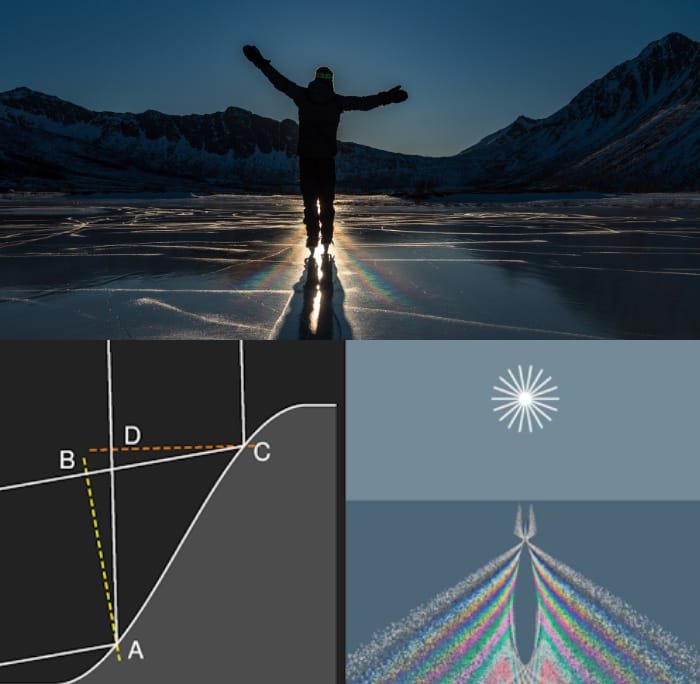 إعداد: م. ماجد ابوزاهرة صادف أحد المتزلجين على “الجليد الطبيعي” في شهر فبراير الماضي 2018 أثناء تواجده في بركة متجمدة محاطة بالجبال في جزيرة “سينجا” النرويجية بالقطب الشمالي ، لغزا أثار حيرة العلماء لأكثر من سنة. حيث رصدت ألوان غريبة بالقرب من إنعكاس الشمس الساطع على الجليد ، وتم التقاط صورة جميلة لهذه الظاهرة من