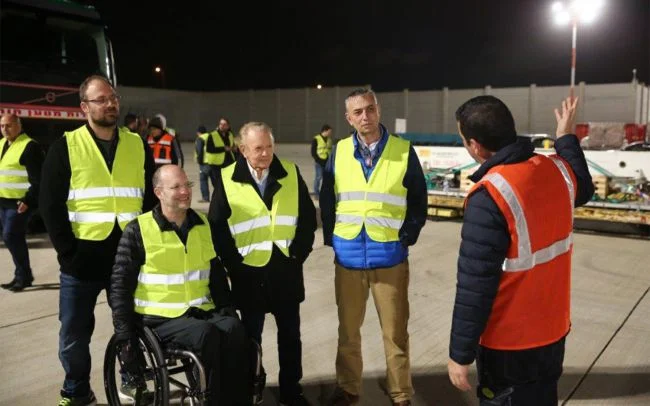 SpaceIL and airport staff discuss the loading of the Beresheet Lander and the upcoming launch to the moon.