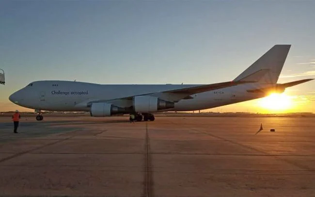 The cargo plane stands on the runway at Ben Gurion airport. It carries SpaceIL’s Beresheet Lander to Orlando International Airport where it will be transported to Cape Canaveral Air Force Station in Florida.