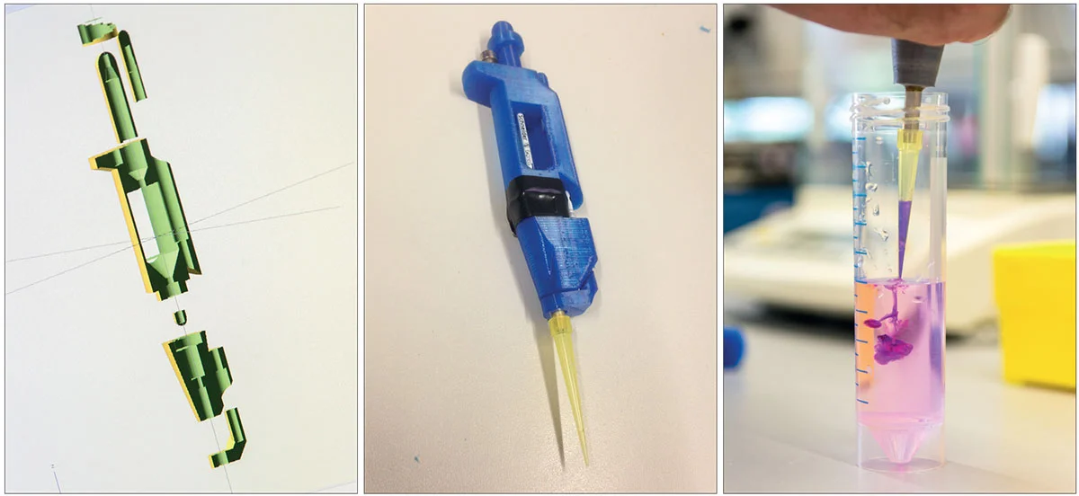 Printed pipettes: Tom Baden refined a crude design for a micropipette. (Courtesy: Open-Labware.net)